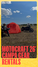 Skip the gear haul. Ride into Moto Craft and step straight into a fully set up campsite. Campa packages include your tent, sleeping bag, pillow, and chair so all you have to do is show up and enjoy the weekend.
